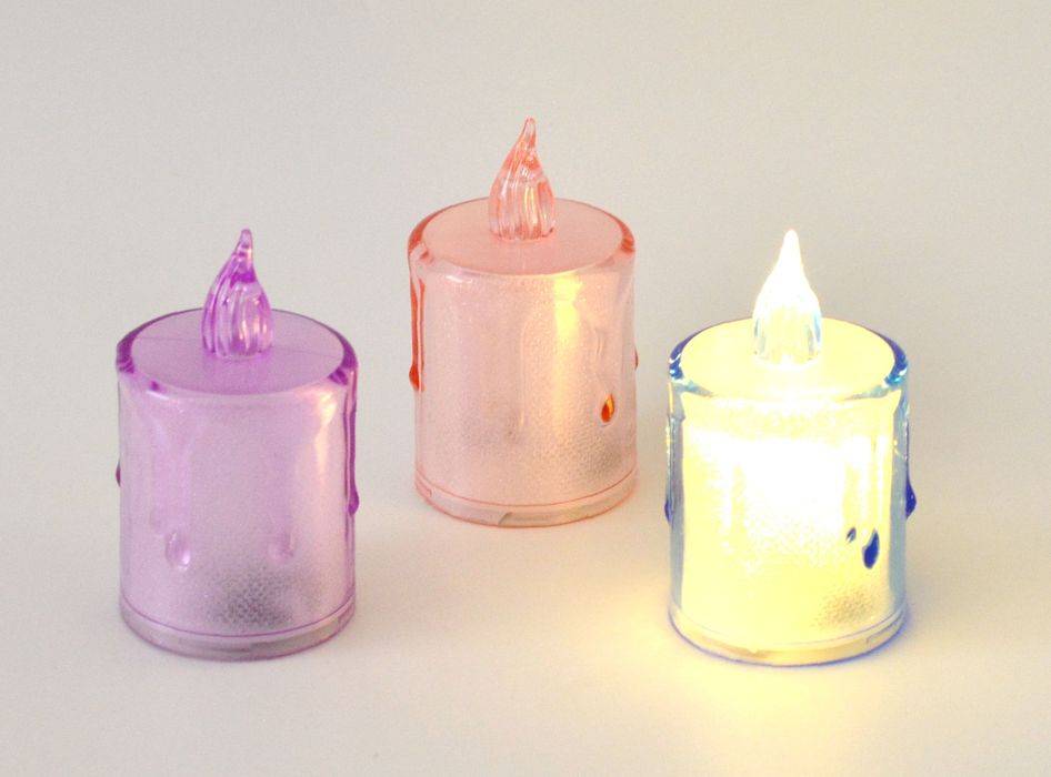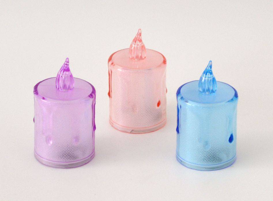 Čajová svíčka na baterie BAREVNÁ (studené světlo)