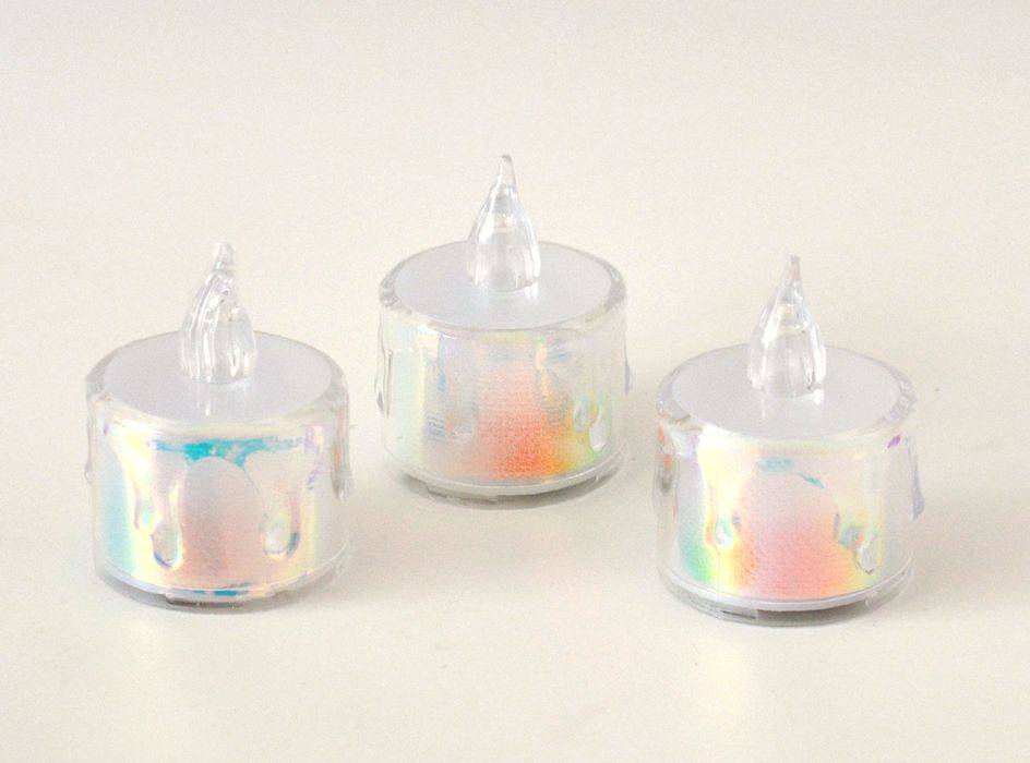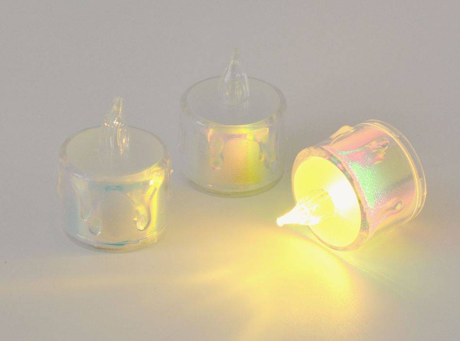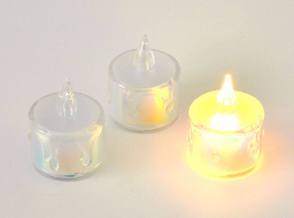 ČAJOVÁ SVÍČKA na baterie vhodná do dekorací a bezpečná do interiéru. Využijete ji k jakýmkoliv příležitostem. Nebliká, pouze svítí teplým žlutým světlem. Průměr 3,6 cm, výška 4,8 cm. Napájení třemi bateriemi LR1130, které jsou součástí balení.