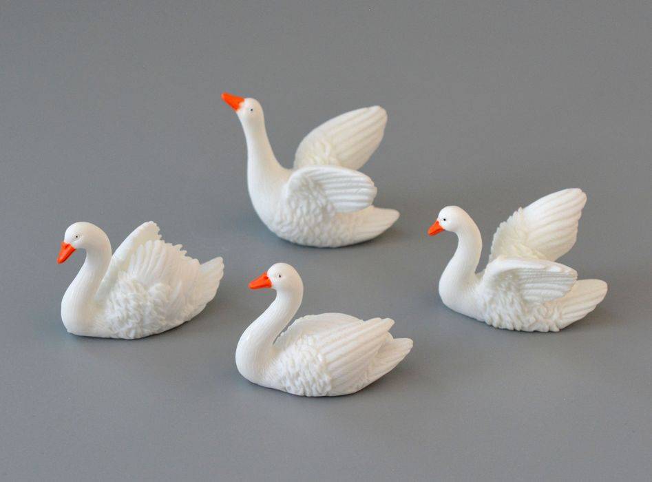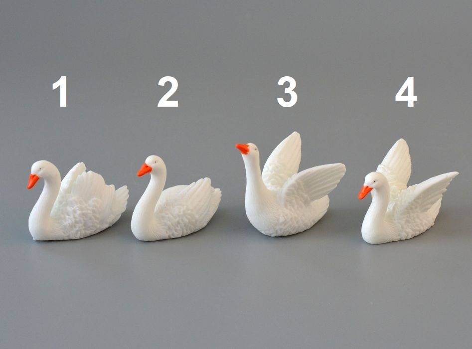 Dekorační figurky bílé labutě k aranžování, k celoročním i svatebním dekoracím a pod. Čtyři druhy. Cena za 1 ks.