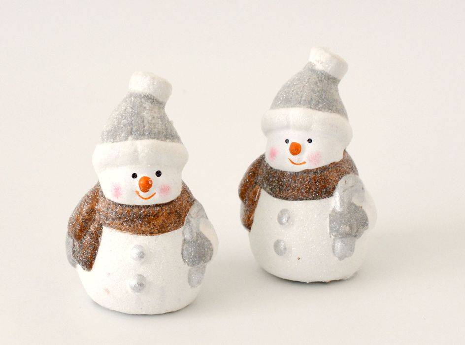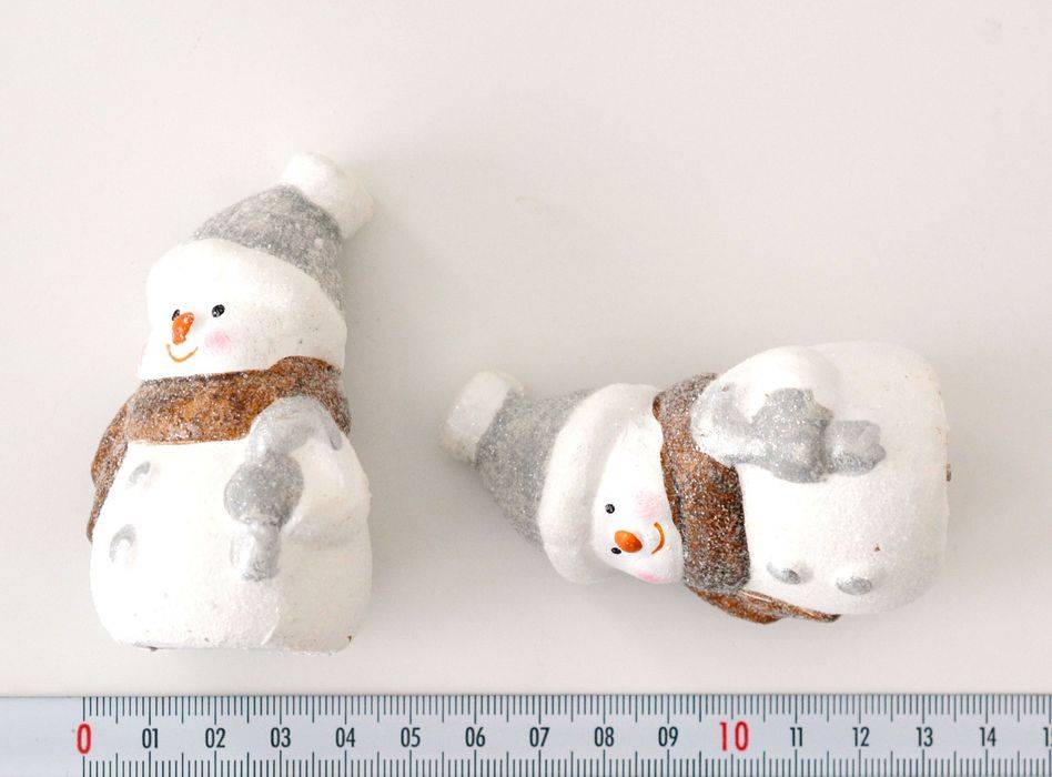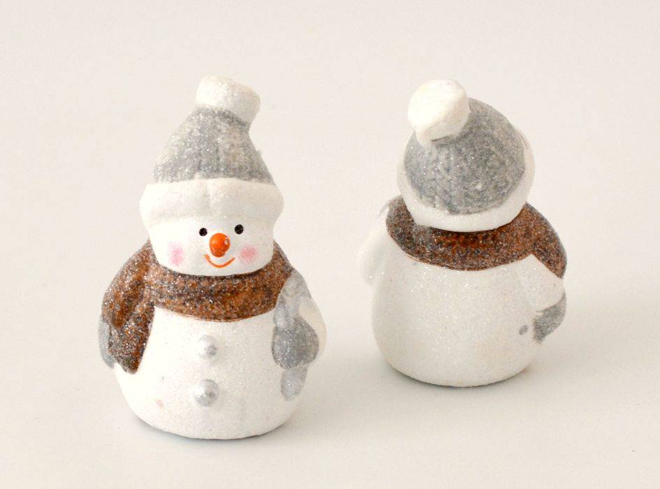 Keramická malovaná figurka sněhuláka s třpytivým glitrem k vánočním a zimním dekoracím. Rozměry 5 x 4,5 x 7,5 cm. Cena za 1 ks.