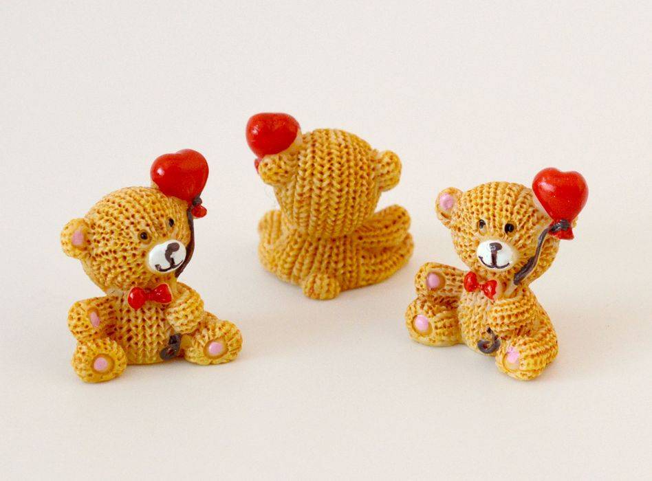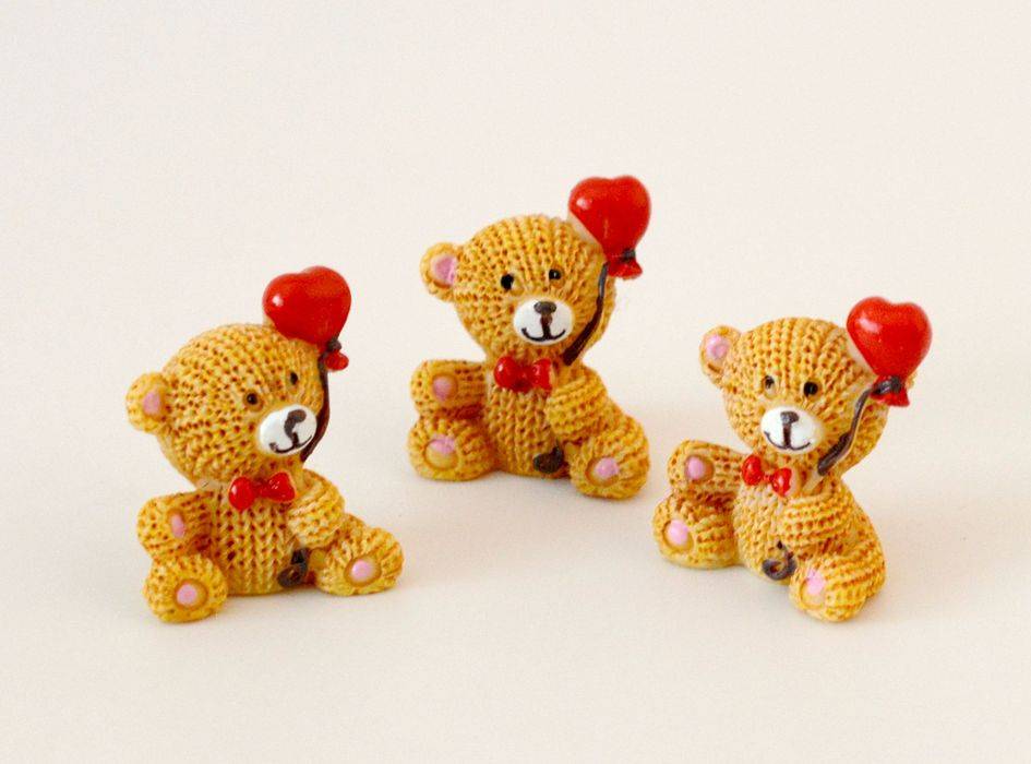 Dekorační mini figurka medvídka se srdíčkem k aranžování, k dekoracím, do aureárií a pod. Rozměr 30 x 22 x 35 mm. Cena za 1 ks.