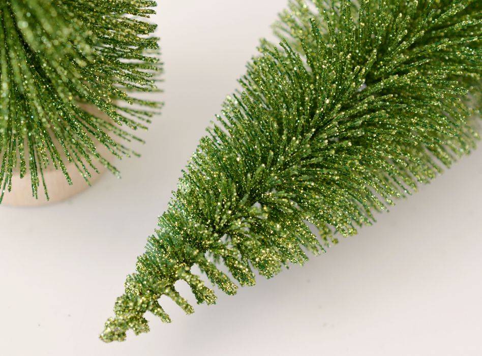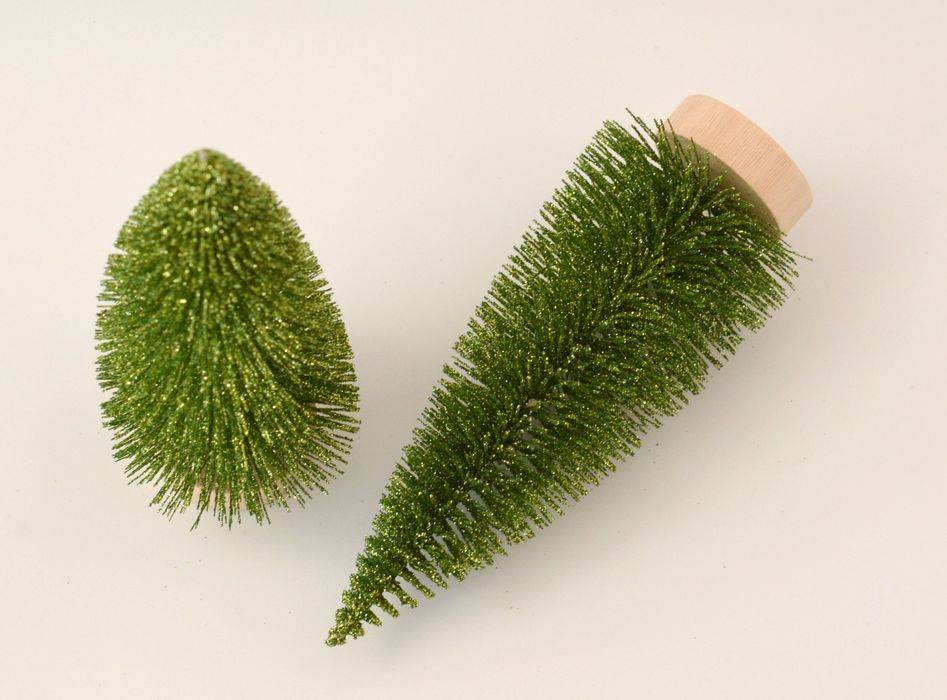 Drátěný dekorační stromeček k vánočním dekoracím a aranžování. Průměr 6,5 cm. Výška 16 cm. Barva zelená s glitry. Cena za 1 ks.