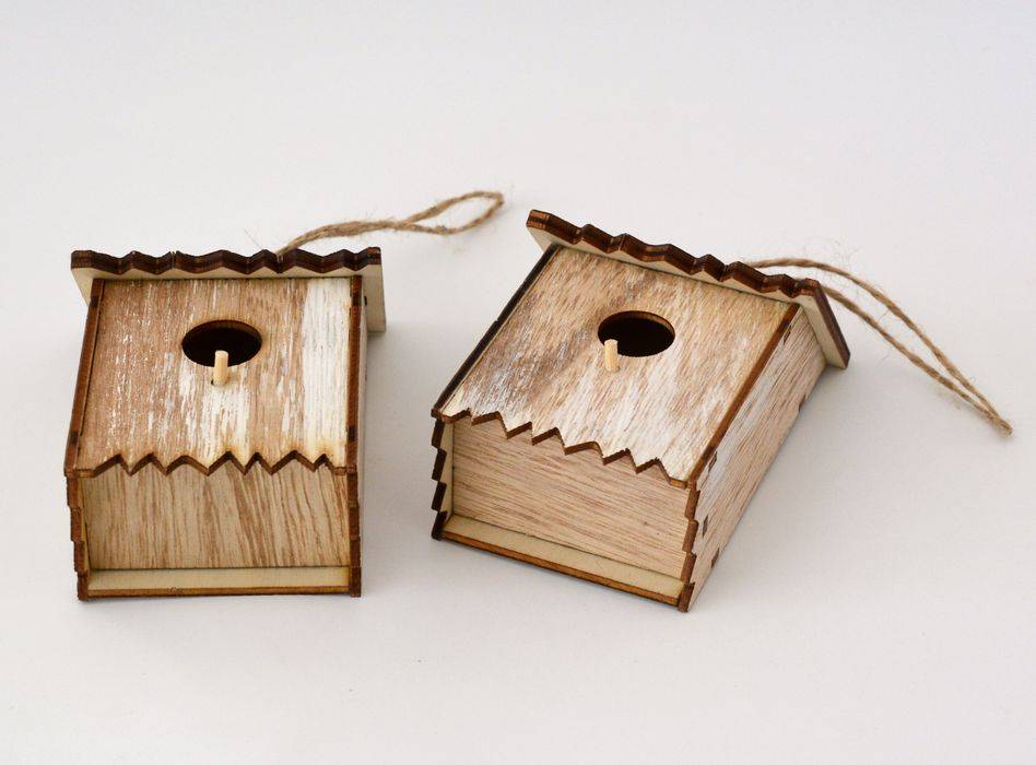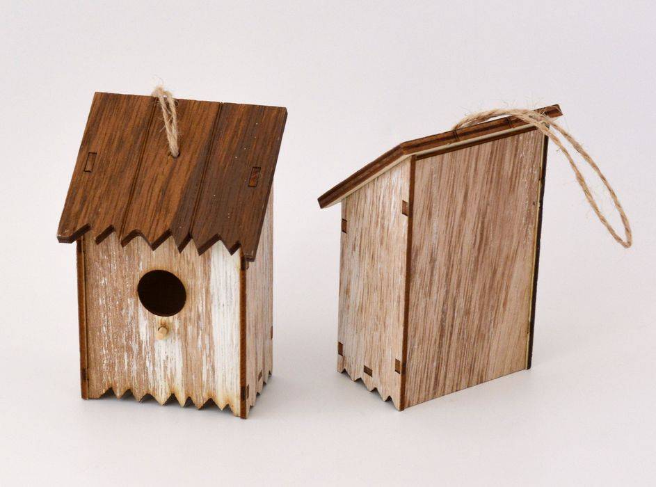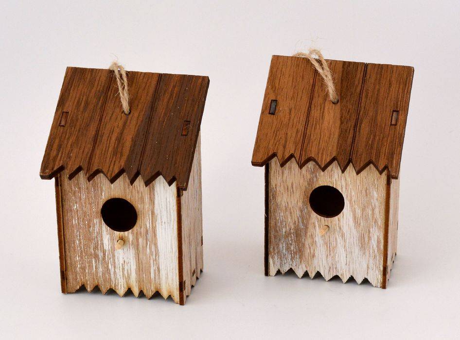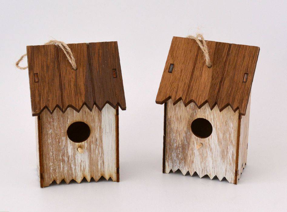 Dřevěná dekorace k zavěšení. Rozměr 7,3 x 5 x výška 11 cm. Celková délka vč. jutového provázku 19 cm. Cena za 1 ks.