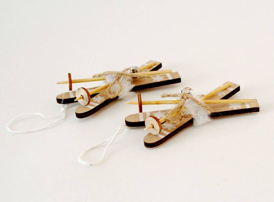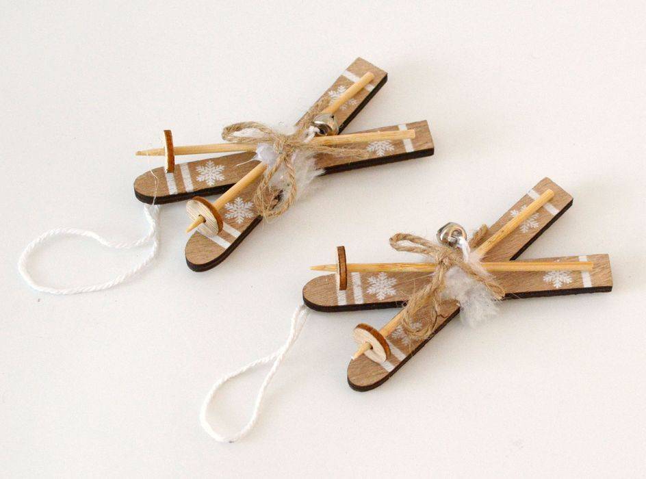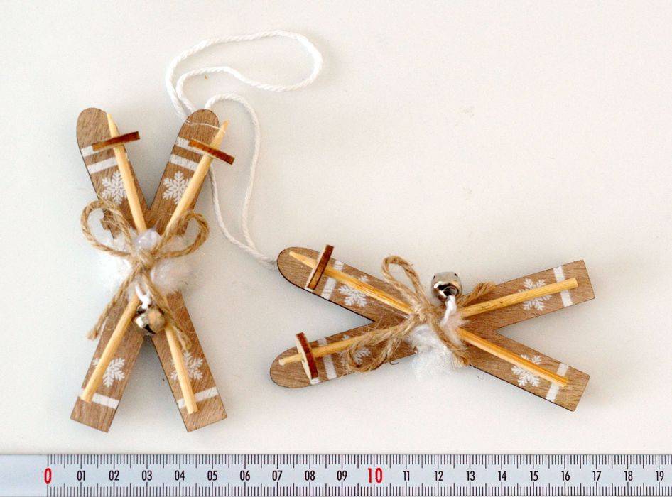 Dřevěná dekorace v podobě páru lyží pro dekorace a zdobení. Jsou velmi krásně zpracované a mají bavlněný provázek k zavěšení. Rozměr 10 x 4,5 x 2 cm. Cena za 1 ks.