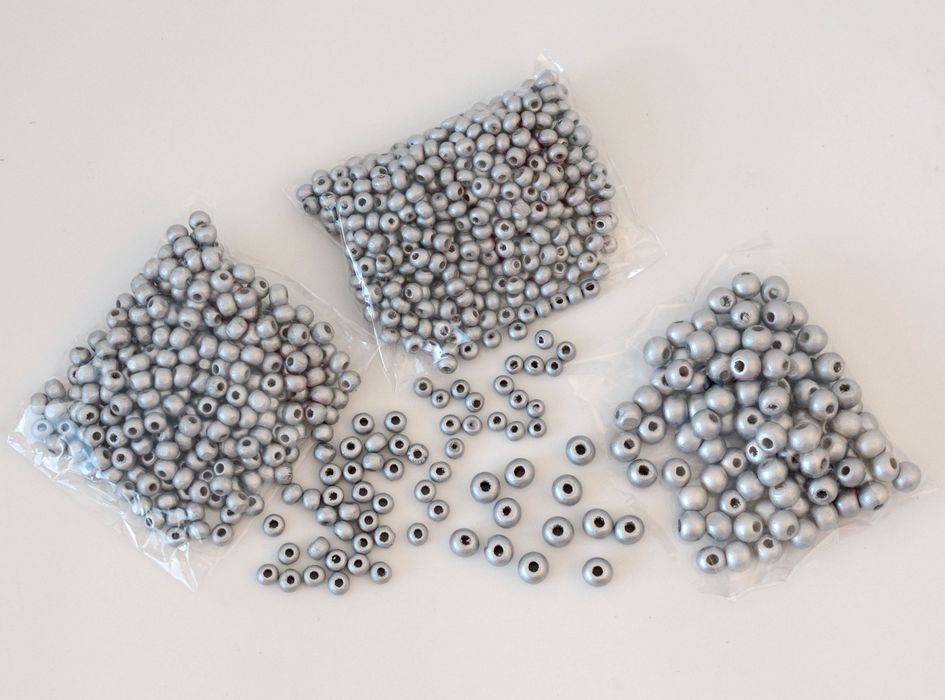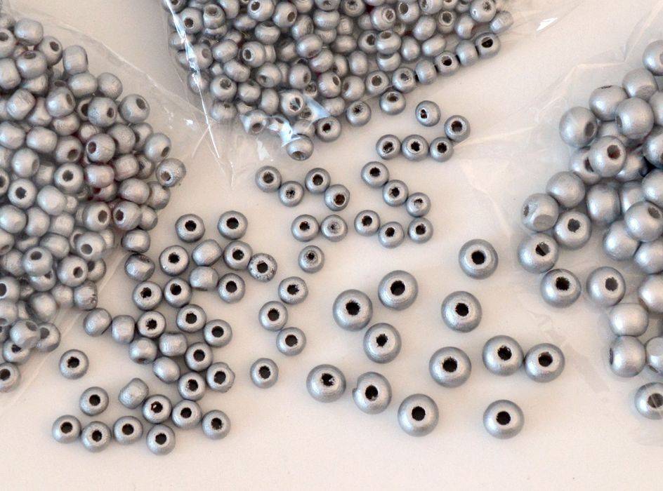 Stříbrné dřevěné korálky pro navlékání, pro výrobu lapačů, náhrdelníků, náramků, náušnic i dekorací. Jsou lehké a hodí se i na kombinování s pedigem. Lakované. Různé velikosti. Barva stříbrná. Balení 20g.