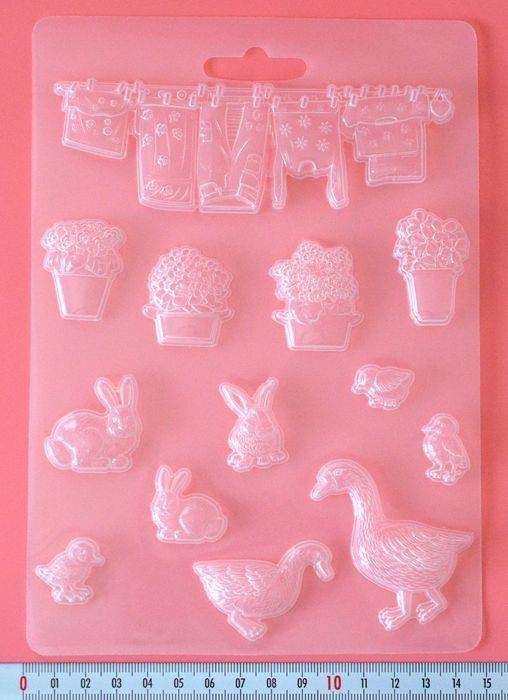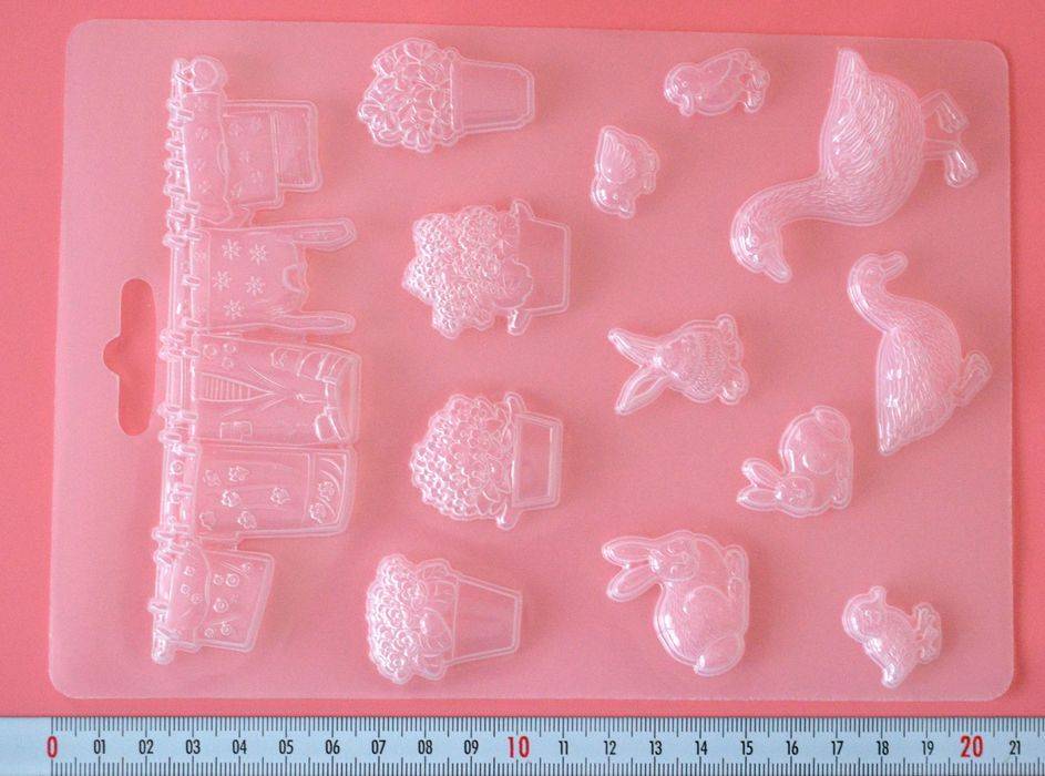 Forma na odlévání sádrou, mýdlem, voskem a pro modelovací hmoty. Forma snese maximální teplotu do 80°C, potom se zkroutí. Doporučujeme nalívat při 75°C.