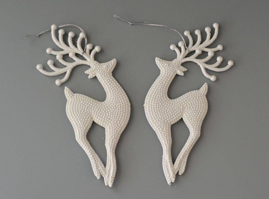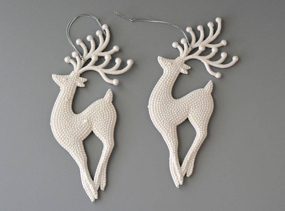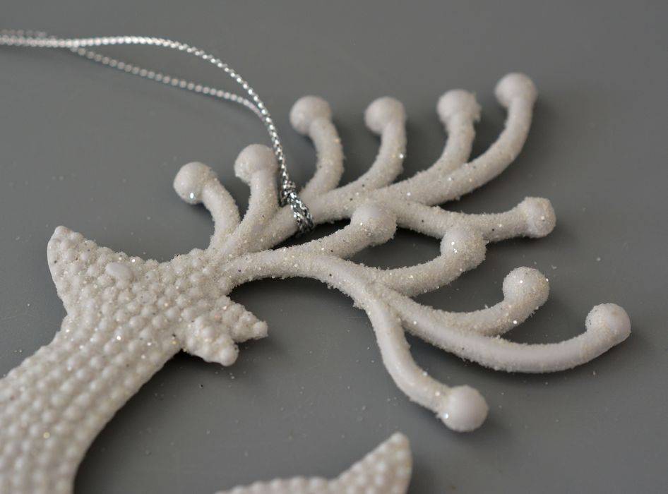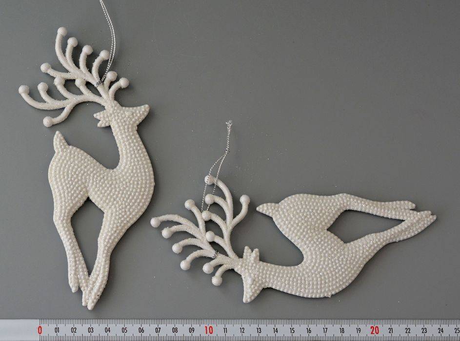 Glitrový závěsný jelínek z tvrdé pěnové hmoty. Rozměry 9 x 17,5 cm. Tloušťka 8 mm. Barva bílá. Cena za 1 ks.