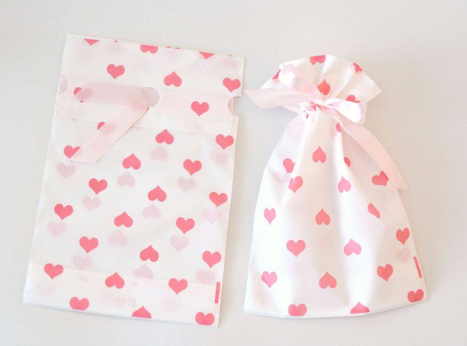 Igelitový sáček bílý s růžovými srdíčky a stahovací atlasovou stuhou. Vhodný k zabalení svíček, mýdel, dekorací, ... Rozměr 15 x 23 cm. Cena za 1 ks.