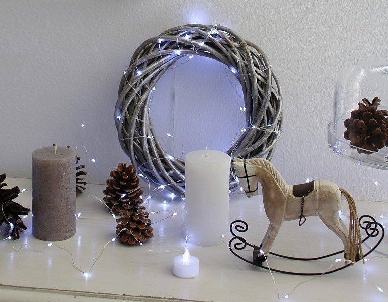 LED osvětlení na baterie. Na světelném řetězu najdete 20 LED diod, které vytvoří vánoční atmosféru. Díky drátu ho můžete i dobře tvarovat. Řetěz pouze svítí (nebliká).