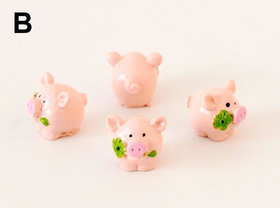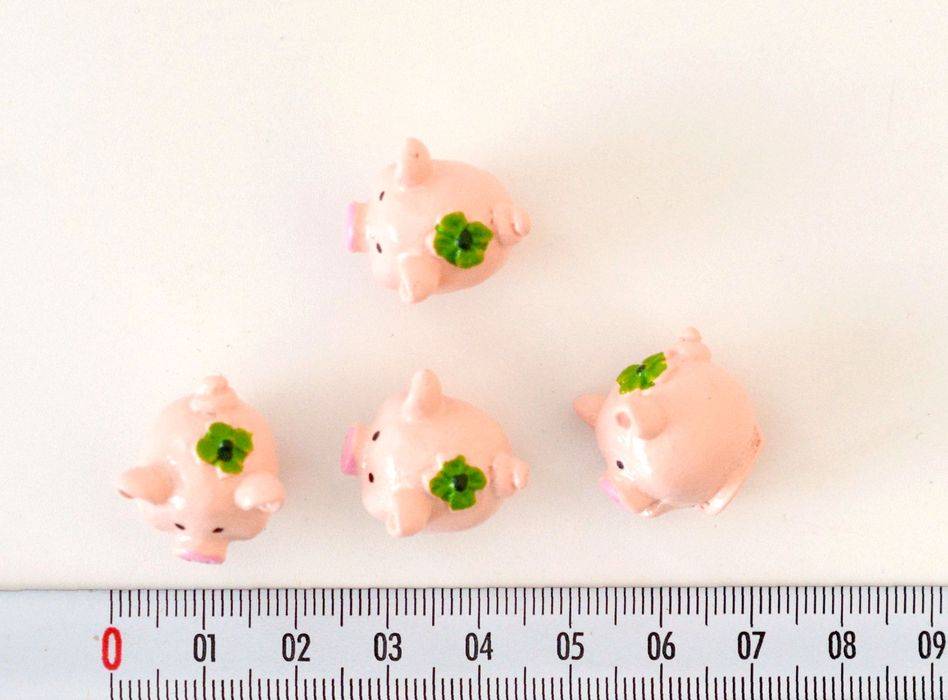 Malované růžové prasátko s čtyřlístkem z umělého kamene. Rozměry 20 x 21 x 18 mm. Dva druhy. Cena za 1 ks.