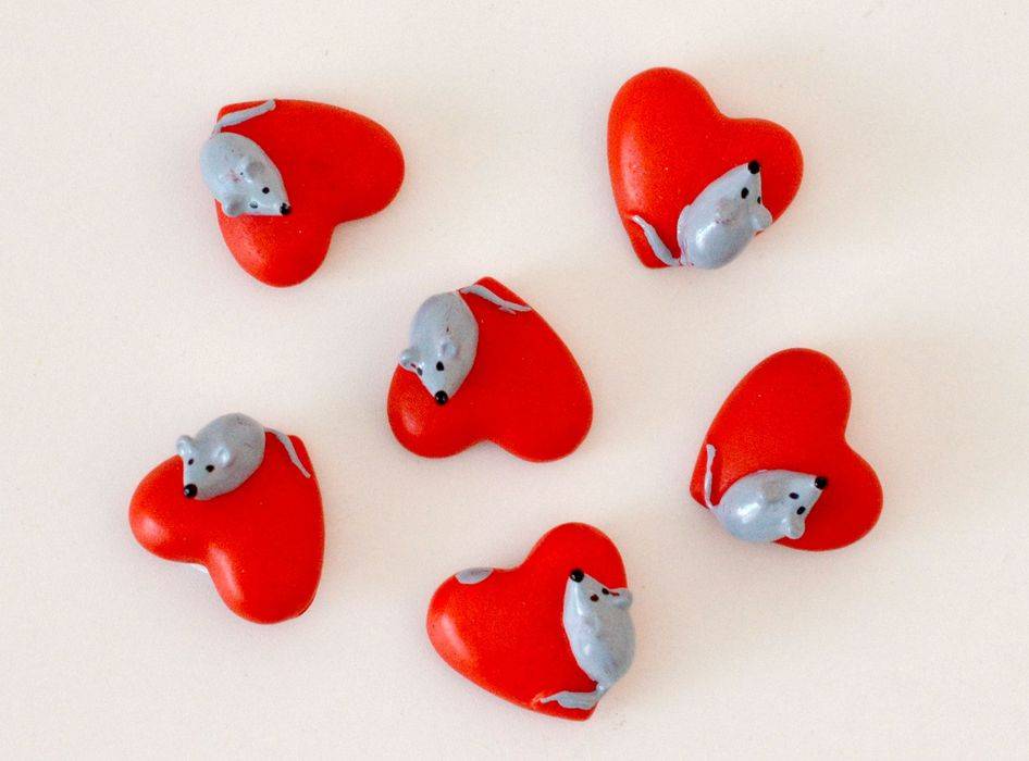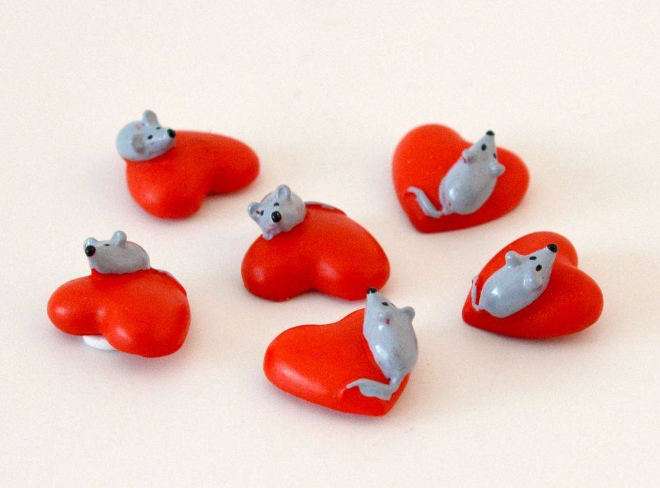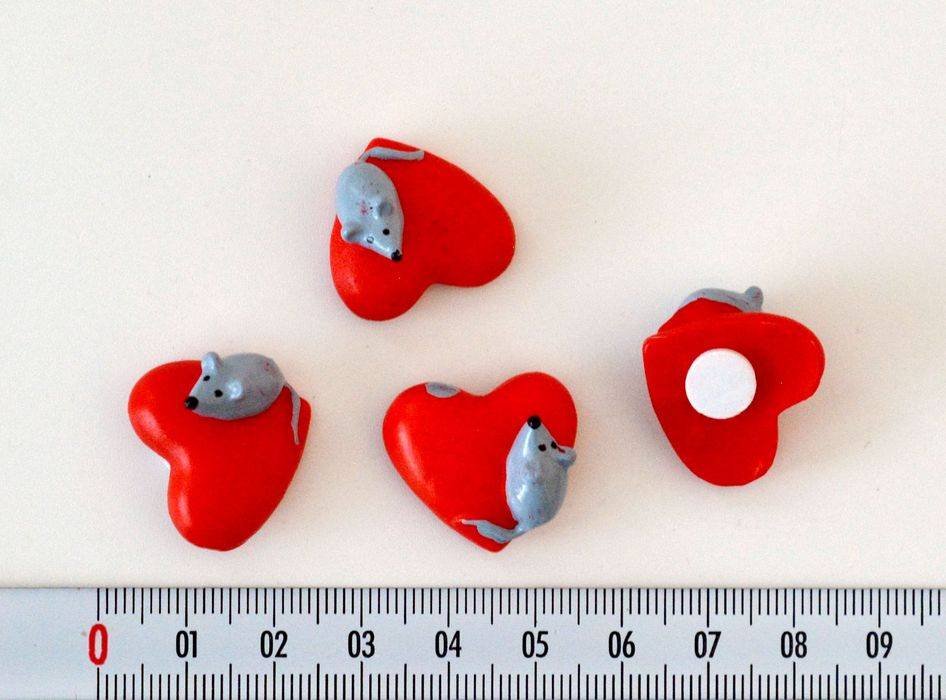 Malované srdíčko s myškou z umělého kamene se samolepkou. Rozměry 21 x 20 x 12 mm. Cena za 1 ks.