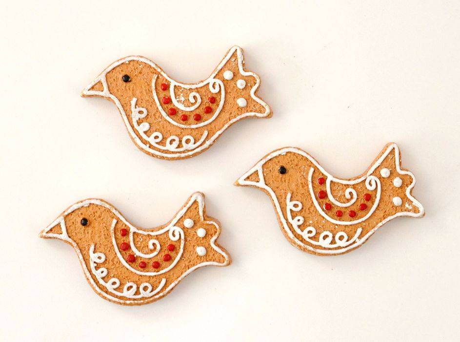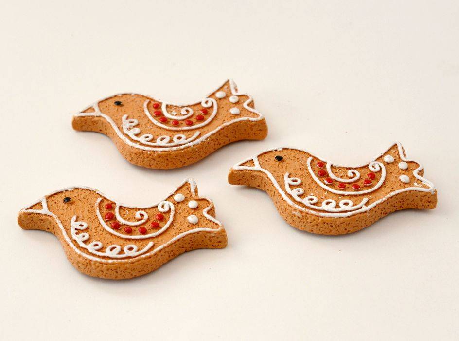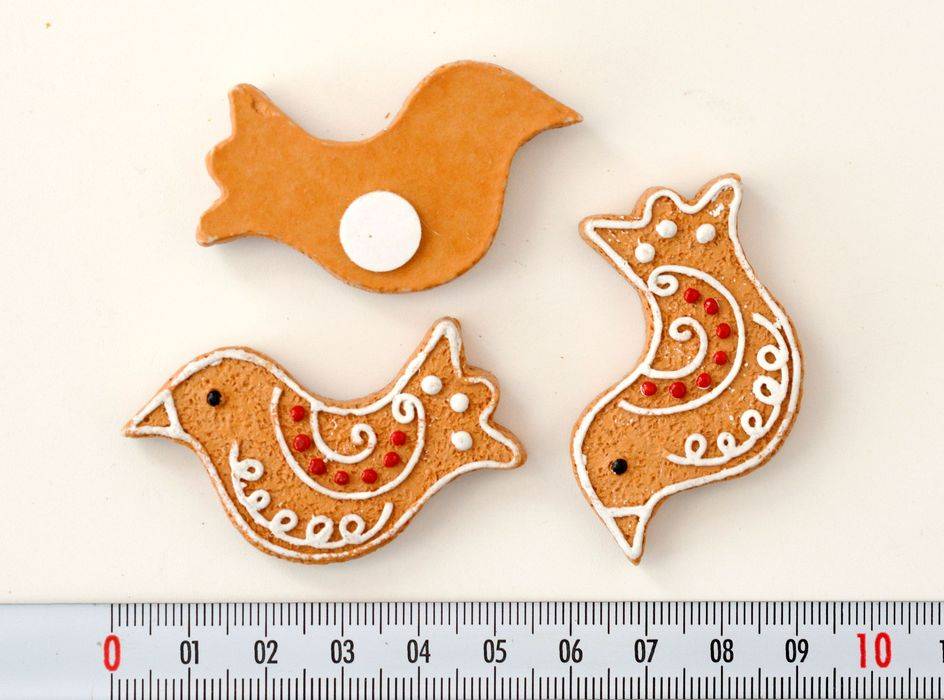 Malovaný perníčkový ptáček z umělého kamene se samolepkou. Rozměry 50 x 30 mm. Tloušťka 6 mm. Cena za 1 ks.