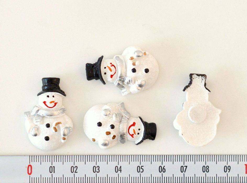 Malovaný sněhuláček z umělého kamene a samolepkou. Rozměry 22 x 33 x 8 mm. Bílo-stříbrný. Cena za 1 ks.