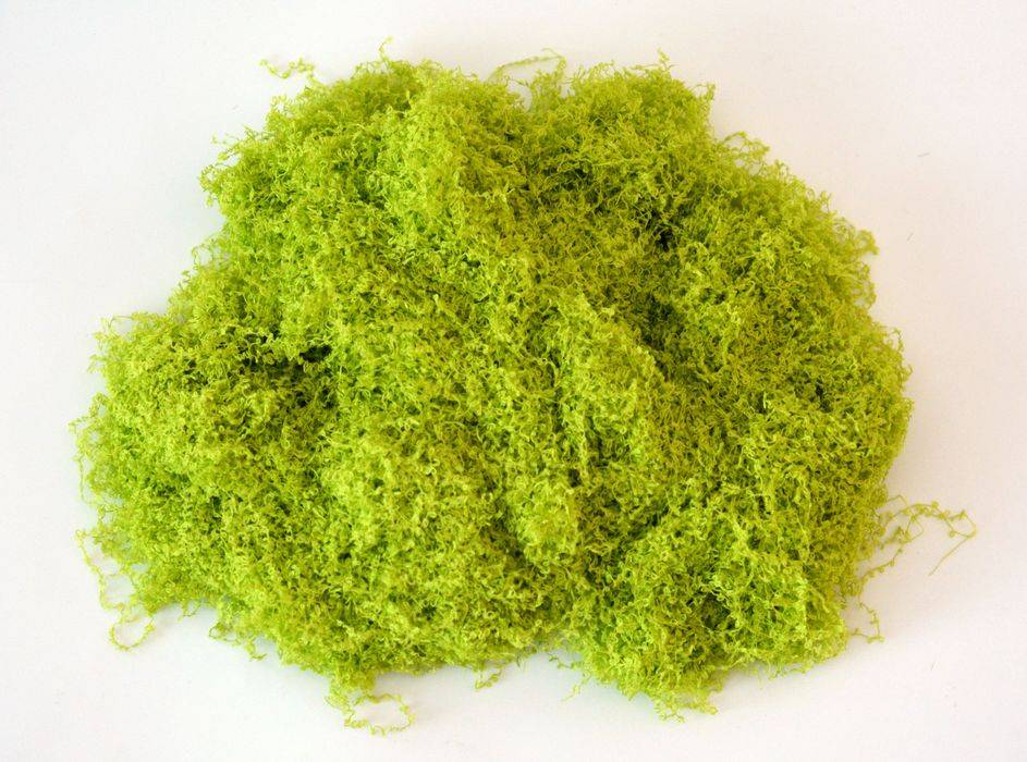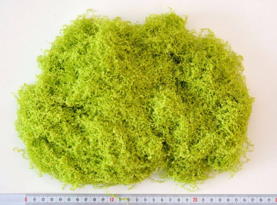 Umělý mech k aranžování, k dekoračním účelům a zdobení. Imitace mechu je velmi lehká, čistá a příjemná na dotek. Barva světle zelená. Cena za bal. v sáčku cca 50 g.