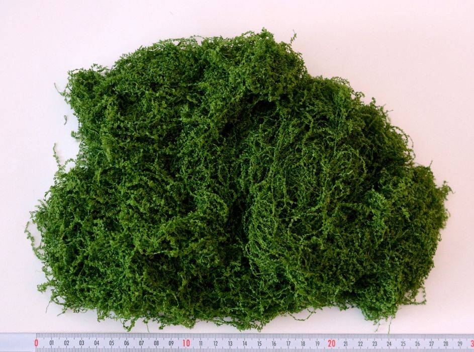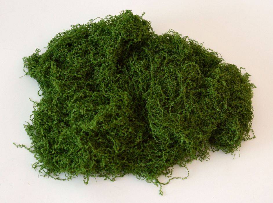 Umělý mech k aranžování, k dekoračním účelům a zdobení. Imitace mechu je velmi lehká, čistá a příjemná na dotek. Barva tmavě zelená. Cena za bal. v sáčku cca 50 g.