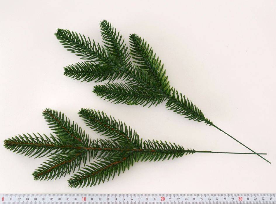 Dekorační zápichová větvička jehličí o délce cca 33 cm, vhodná pro vánoční dekorace, aranžování a pod. Cena za 1 ks.