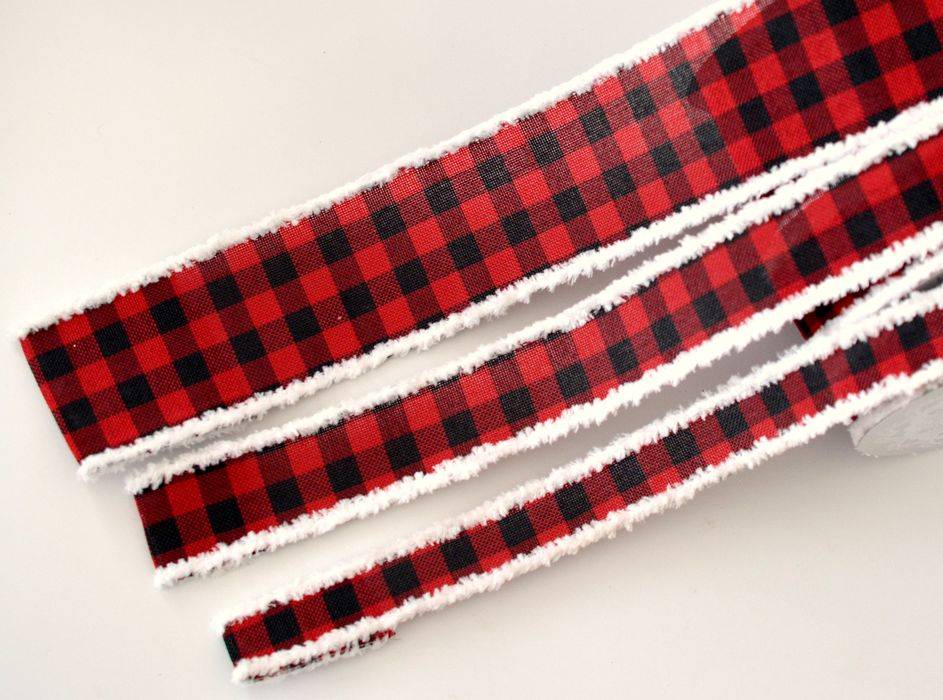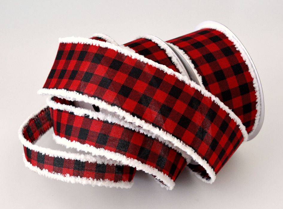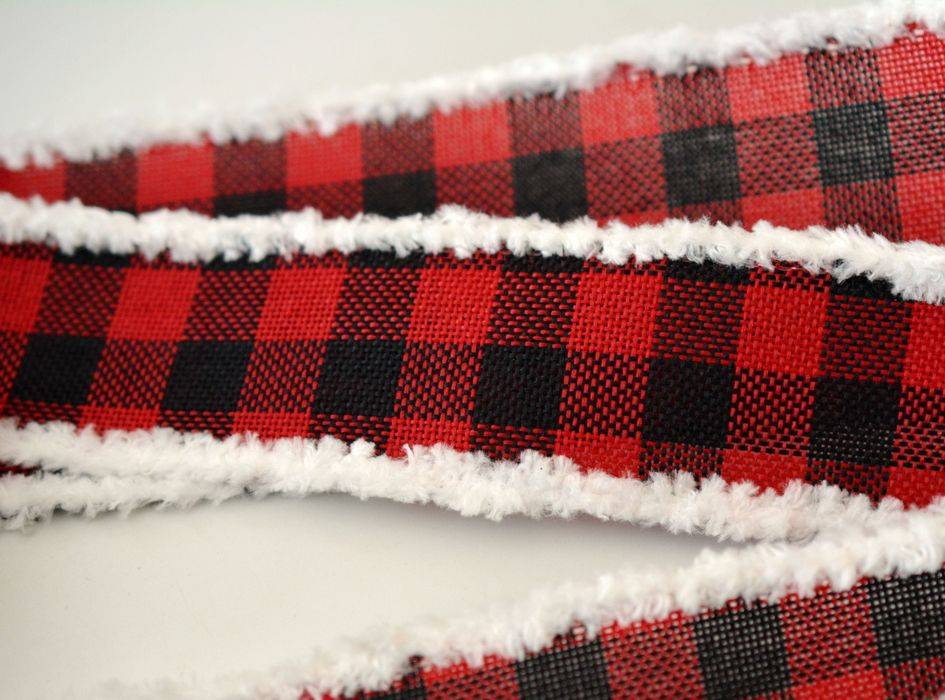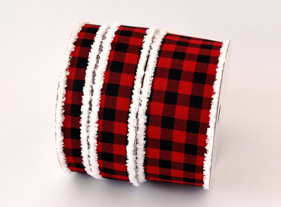 Stuha s kožešinkou - ČERNO-ČERVENÉ KOSTKY - š. 3,8 cm, délka 9,14 m
