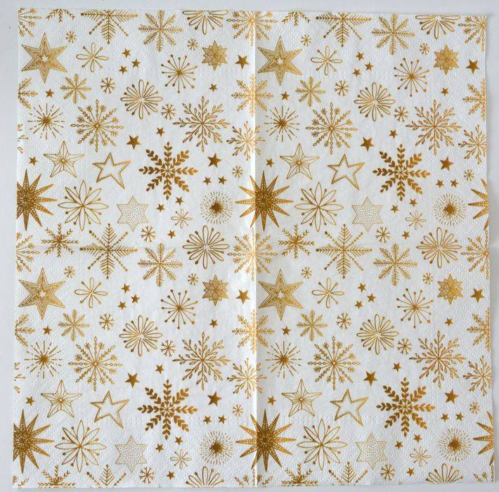 Ubrousek na decoupage - Zima a Vánoce - Hvězdy a vločky