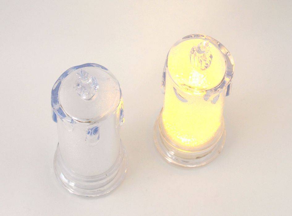 Umělá svítící LED svíčka s podstavcem HOLOGRAM (žluté světlo)