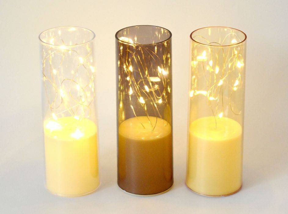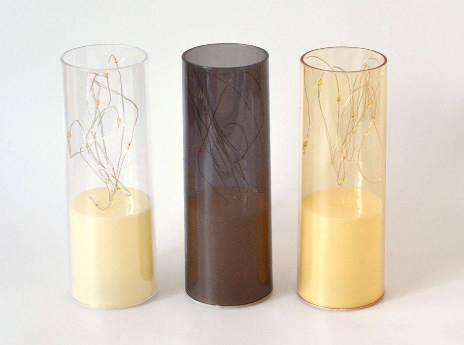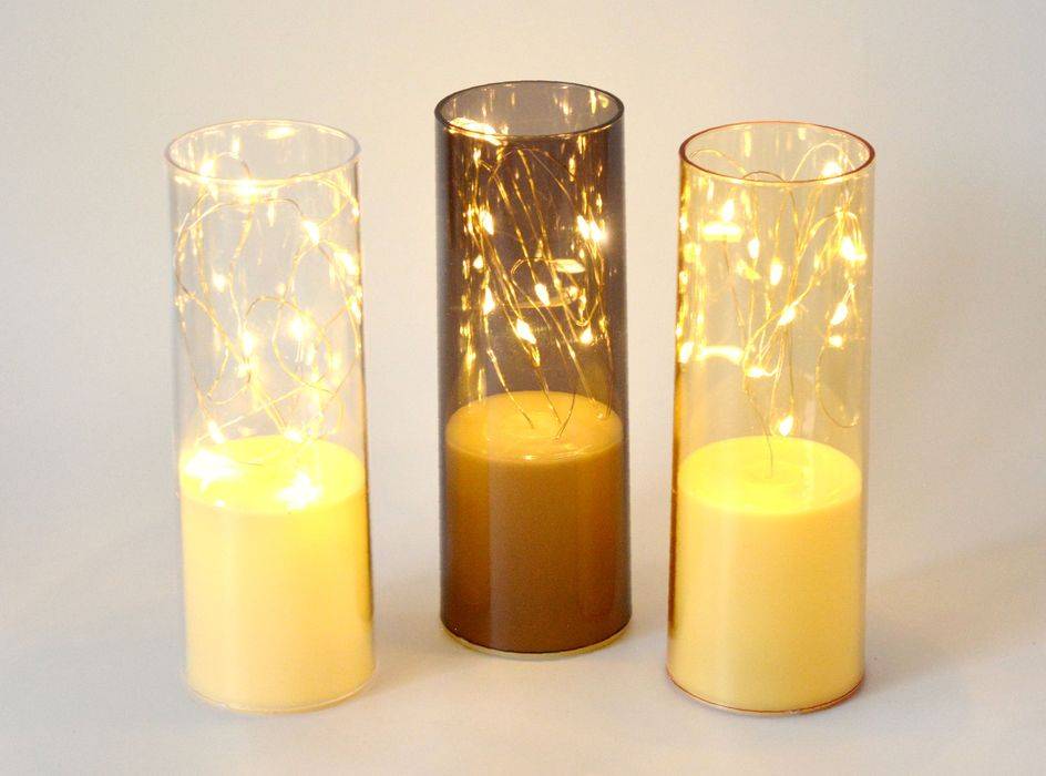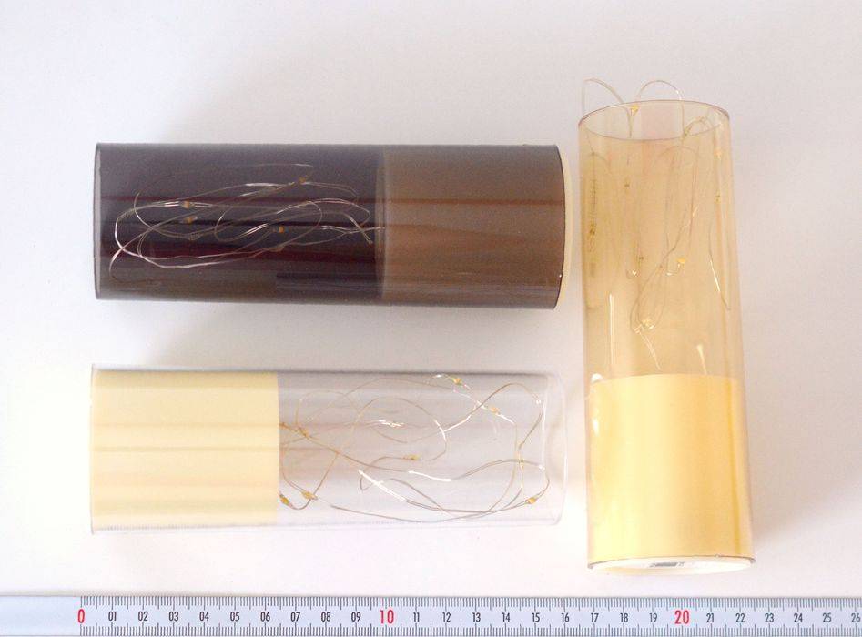 Umělý svítící VÁLEC s LED řetězem (žluté světlo) - KOUŘOVÝ