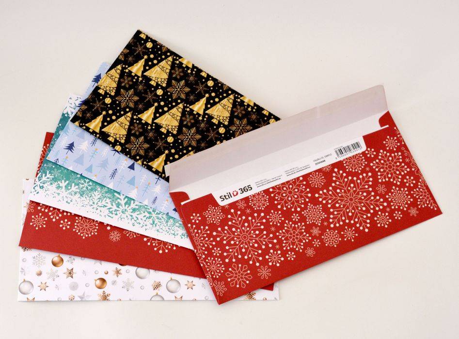 Papírová obálka ve vánočním provedení nejen pro speciální události jako jsou Vánoce, svatby, oslavy a jiné příležitosti. Hodí se na darování peněz, na dárkové poukazy či jiné reklamní tiskoviny. Je vhodná na běžné použití i k dotvoření. Otevírá se na delší straně, má samolepící uzavírání. Cena za 1 ks.